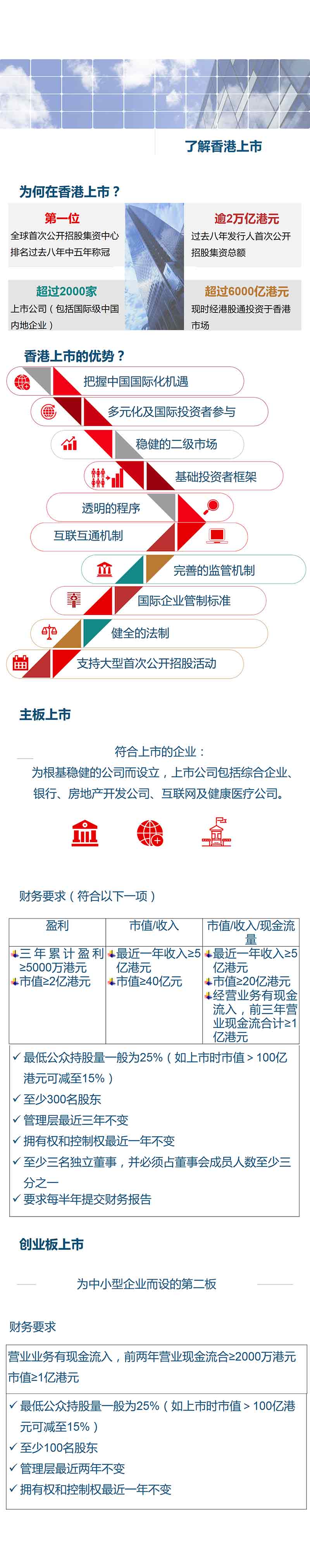 香港证券业及银行业以健全和稳健著称,交易所拥有先进完善的交易、结算及交收设施,是内地企业及海外上市的 首 选 市场。今天小编带大家了解一下如何在香港上市。